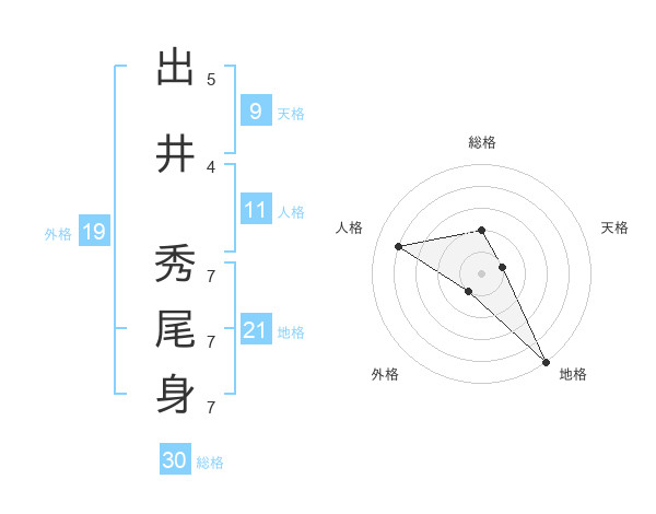 出井 秀尾身さんを姓名の画数から五運を鑑定