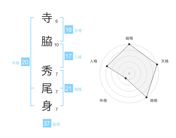 寺脇 秀尾身さんを姓名の画数から五運を鑑定