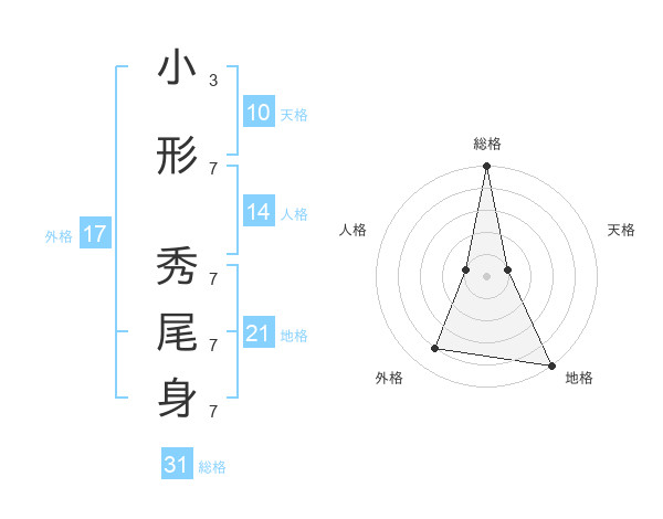 小形 秀尾身さんを姓名の画数から五運を鑑定
