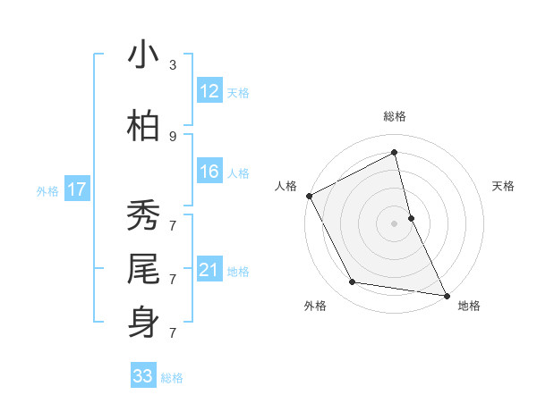 小柏 秀尾身さんを姓名の画数から五運を鑑定