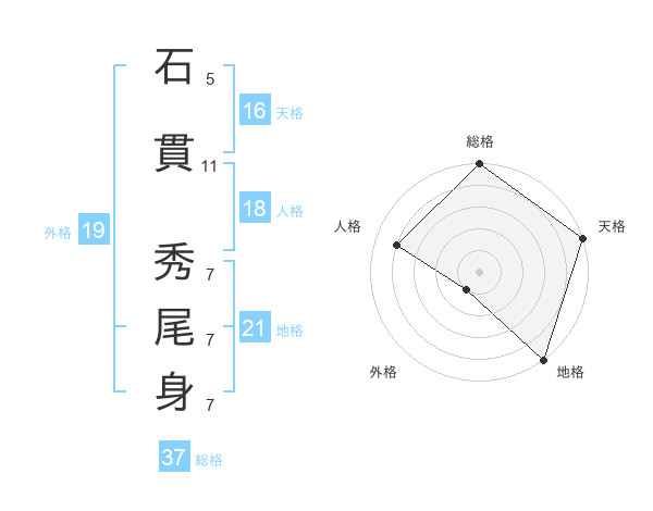 石貫 秀尾身さんを姓名の画数から五運を鑑定