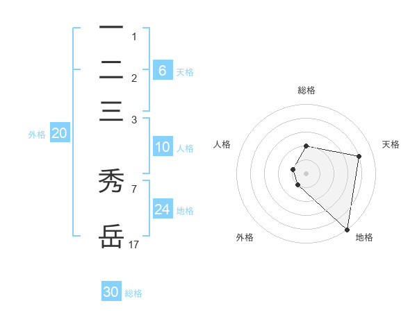 一二三 秀岳さんを姓名の画数から五運を鑑定