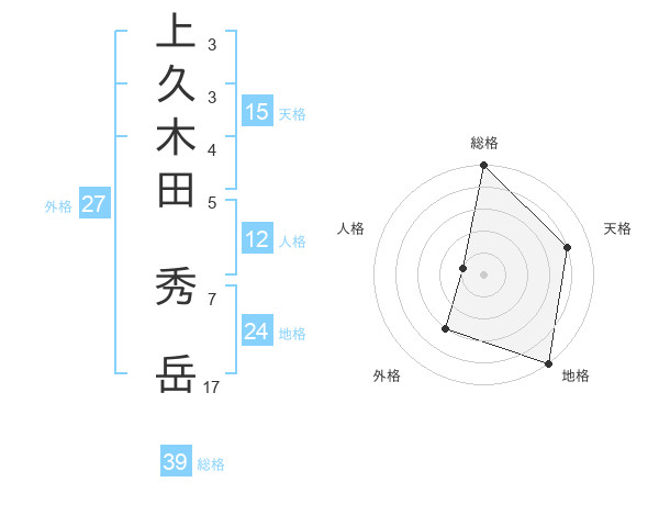 上久木田 秀岳さんを姓名の画数から五運を鑑定
