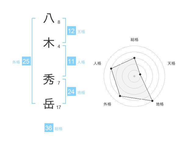 八木 秀岳さんを姓名の画数から五運を鑑定