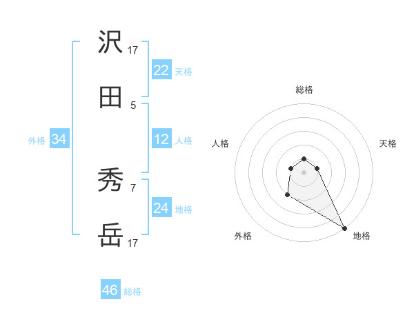 沢田 秀岳さんを姓名の画数から五運を鑑定