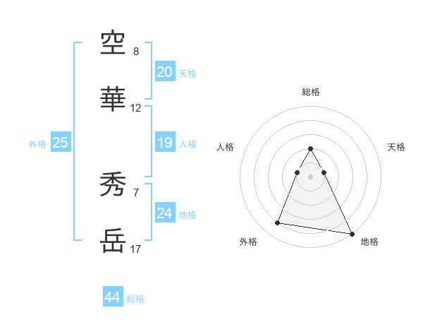 空華 秀岳さんの総格は44画の2点!