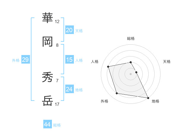 華岡 秀岳さんを姓名の画数から五運を鑑定