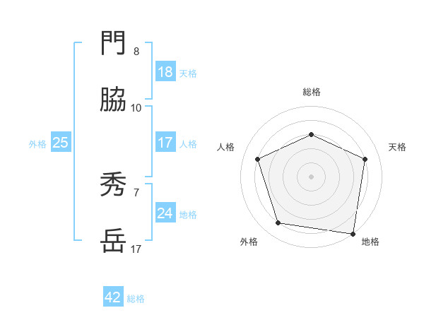 門脇 秀岳さんの総格は42画の3点!