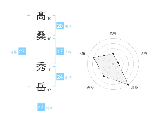 髙桑 秀岳さんを姓名の画数から五運を鑑定