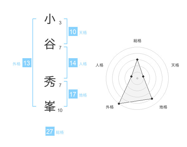 小谷 秀峯さんを姓名の画数から五運を鑑定