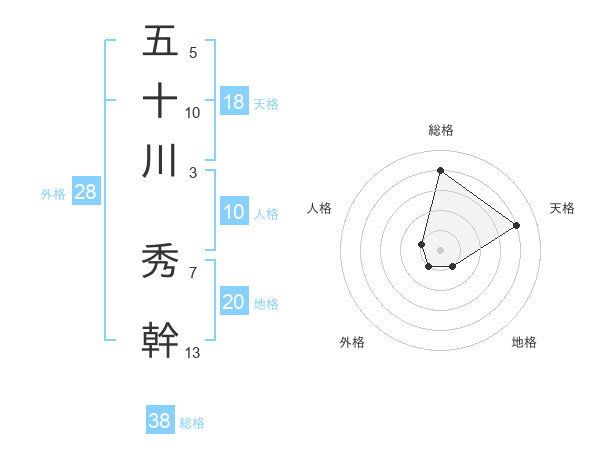 五十川 秀幹さんを姓名の画数から五運を鑑定