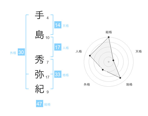 手島 秀弥紀さんを姓名の画数から五運を鑑定