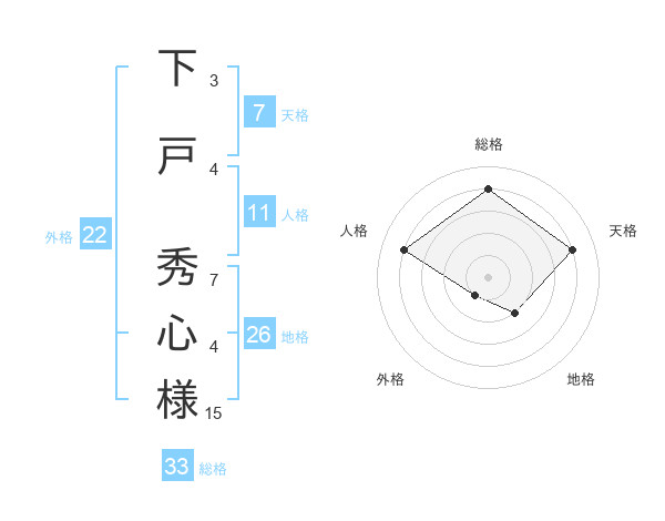 下戸 秀心様さんを姓名の画数から五運を鑑定