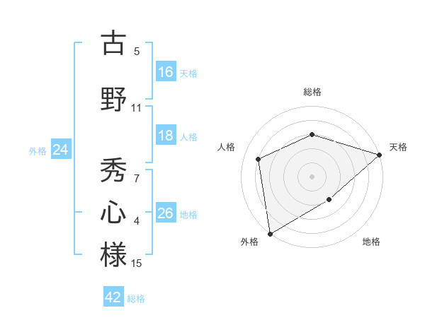 古野 秀心様さんを姓名の画数から五運を鑑定