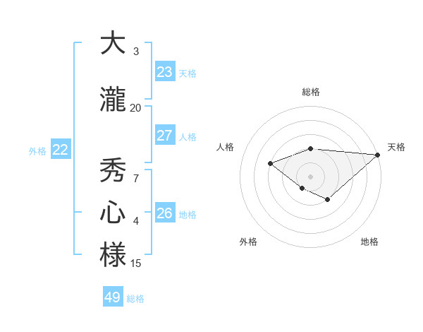 大瀧 秀心様さんの天格は23画の5点!
