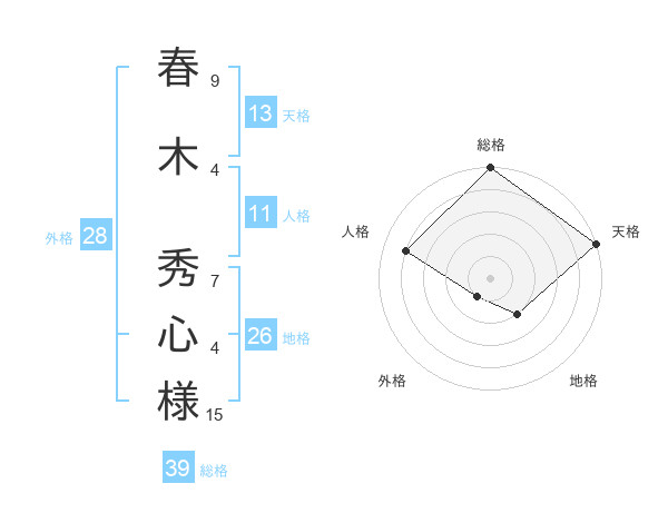 春木 秀心様さんの総格は39画の5点!