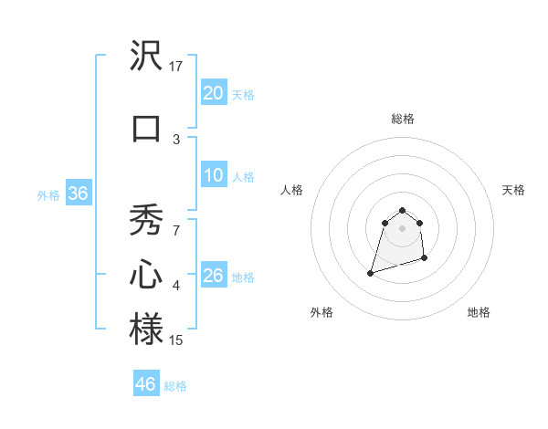 沢口 秀心様さんを姓名の画数から五運を鑑定