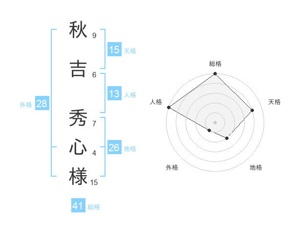 秋吉 秀心様さんを姓名の画数から五運を鑑定