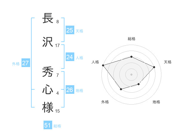 長沢 秀心様さんを姓名の画数から五運を鑑定