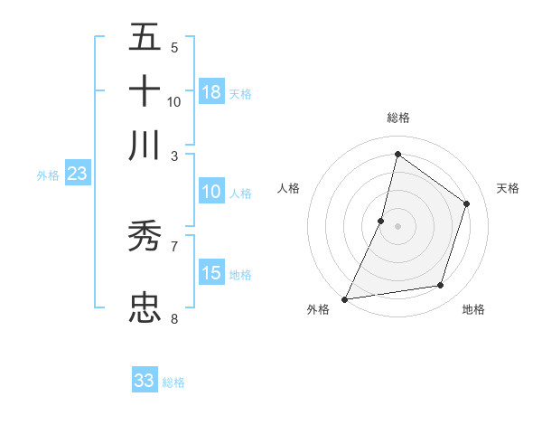 五十川 秀忠さんの総格は33画の4点!