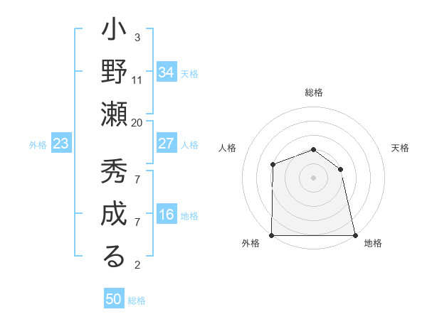 小野瀬 秀成るさんを姓名の画数から五運を鑑定