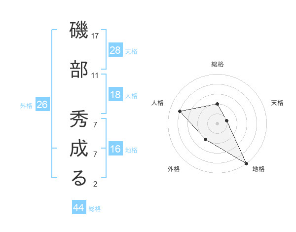 磯部 秀成るさんの総格は44画の2点!