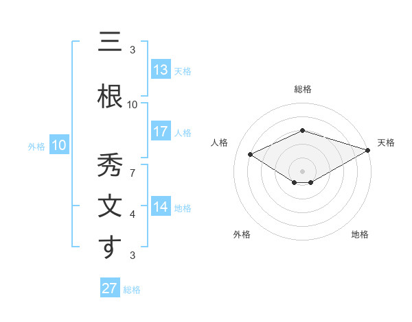 三根 秀文すさんを姓名の画数から五運を鑑定