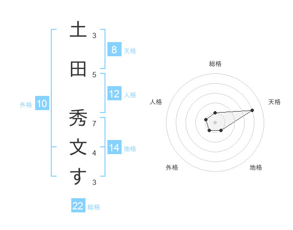 土田 秀文すさんを姓名の画数から五運を鑑定