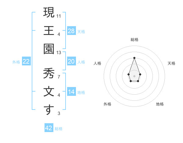 現王園 秀文すさんを姓名の画数から五運を鑑定