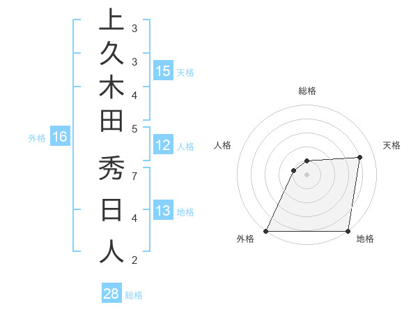 上久木田 秀日人さんを姓名の画数から五運を鑑定