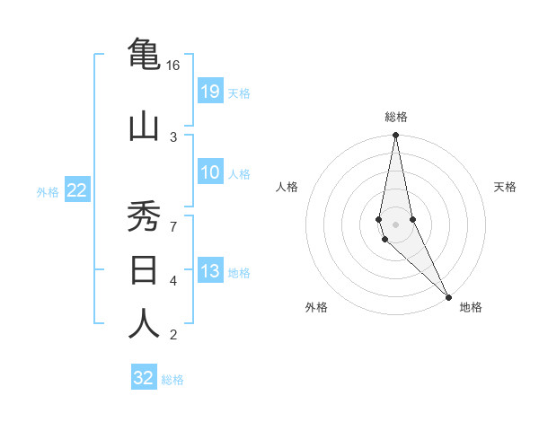 亀山 秀日人さんを姓名の画数から五運を鑑定