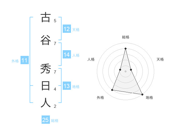 古谷 秀日人さんの総格は25画の4点!