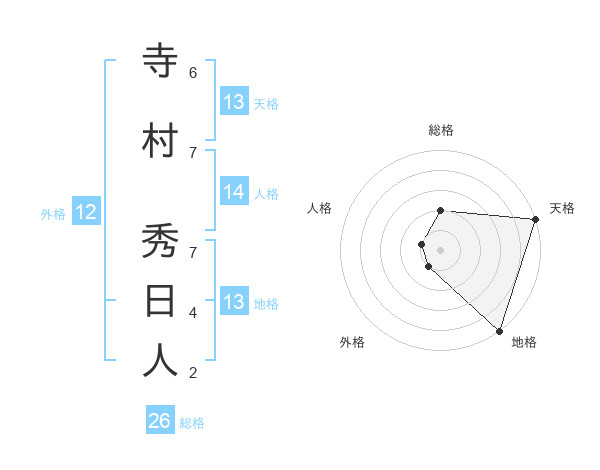 寺村 秀日人さんの天格は13画の5点!