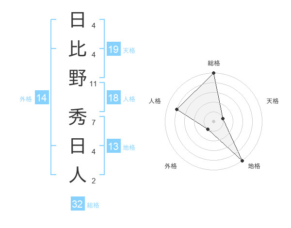日比野 秀日人さんを姓名の画数から五運を鑑定