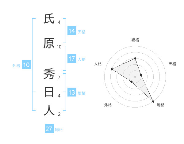 氏原 秀日人さんを姓名の画数から五運を鑑定