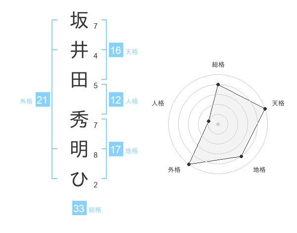 坂井田 秀明ひさんを姓名の画数から五運を鑑定