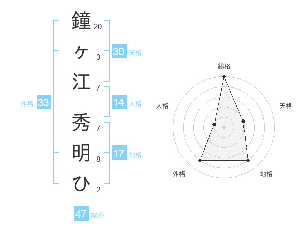 鐘ヶ江 秀明ひさんの総格は47画の5点!