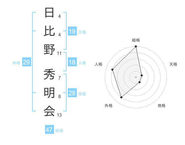 日比野 秀明会さんを姓名の画数から五運を鑑定