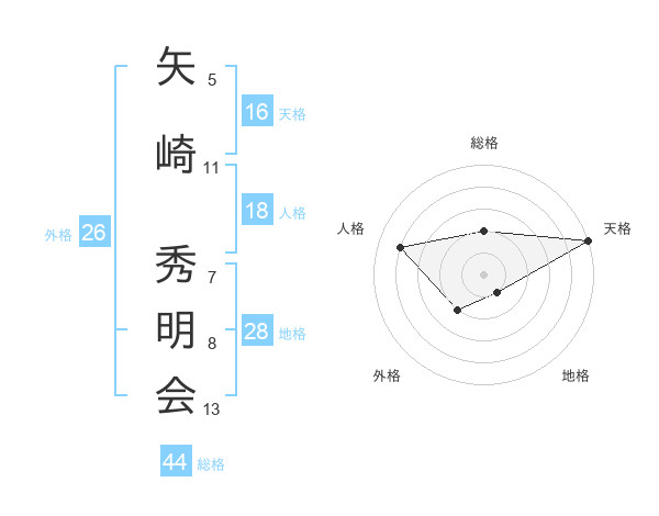 矢崎 秀明会さんの総格は44画の2点!