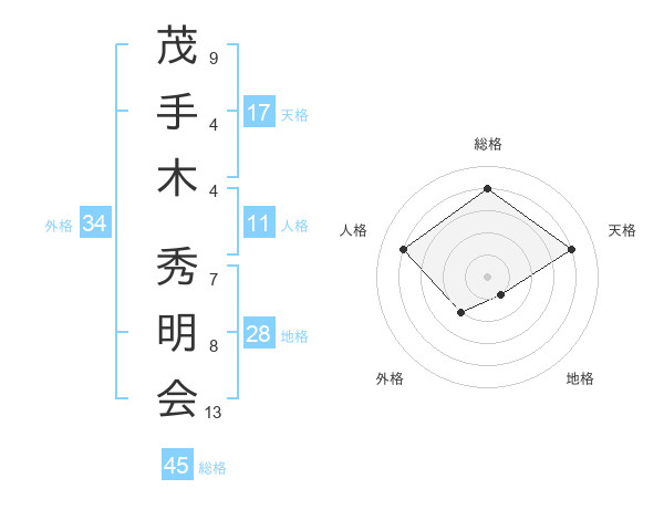 茂手木 秀明会さんを姓名の画数から五運を鑑定