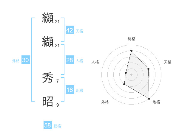 纐纈 秀昭さんの総格は58画の4点!