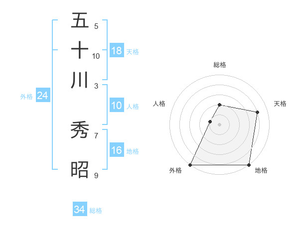 五十川 秀昭さんの総格は34画の2点!