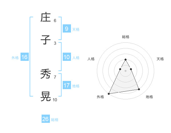 庄子 秀晃さんを姓名の画数から五運を鑑定