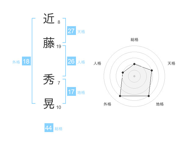近藤 秀晃さんを姓名の画数から五運を鑑定