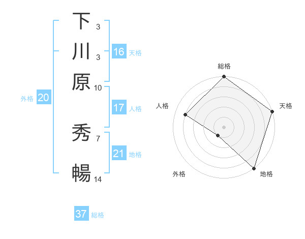 下川原 秀暢さんの総格は37画の5点!