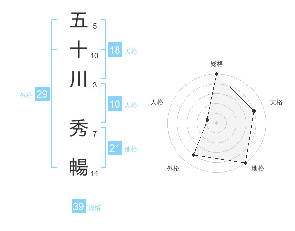 五十川 秀暢さんを姓名の画数から五運を鑑定