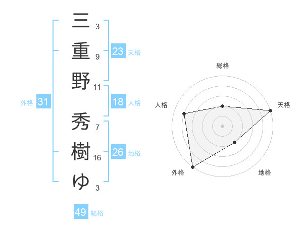 三重野 秀樹ゆさんの総格は49画の2点!