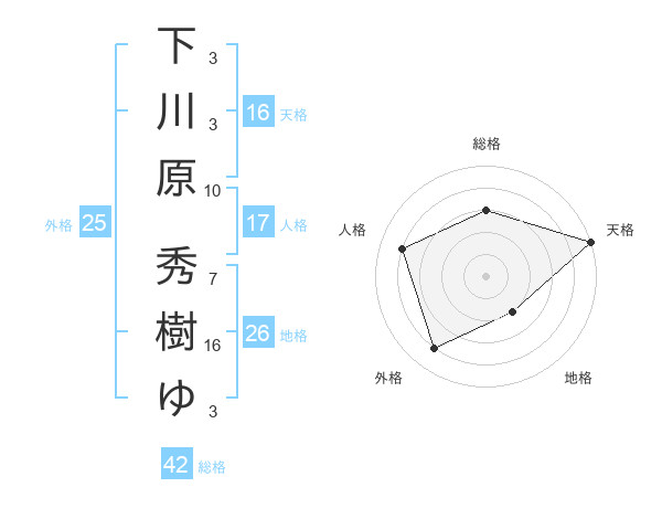 下川原 秀樹ゆさんを姓名の画数から五運を鑑定