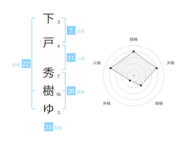 下戸 秀樹ゆさんを姓名の画数から五運を鑑定