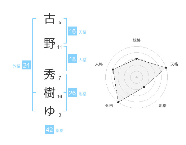 古野 秀樹ゆさんを姓名の画数から五運を鑑定